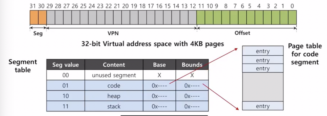 그리고 각 segement 별로 각각의 page table을 만드는 것이다. (segment 개수 = page table 개수)