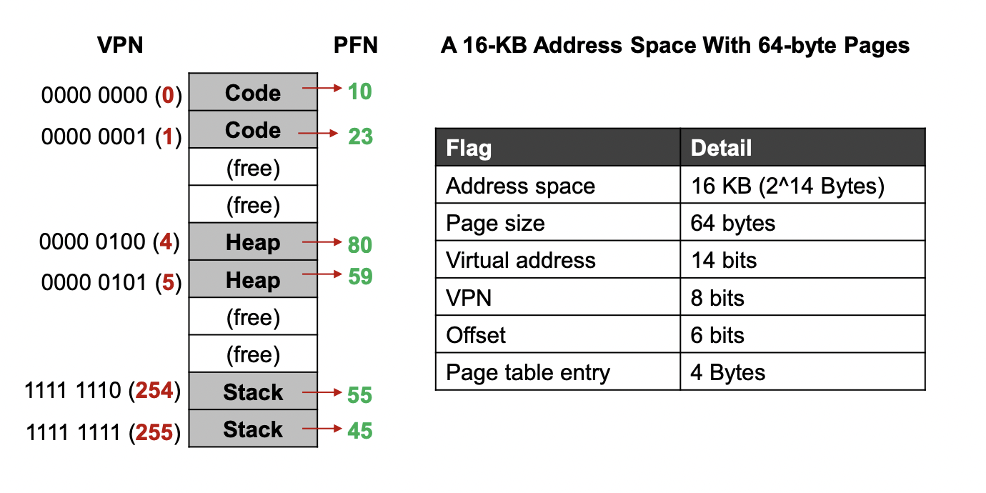 -64-byte pages : 한 페이지에 64 byte = 2^6이므로 6bit 가 offset에 사용