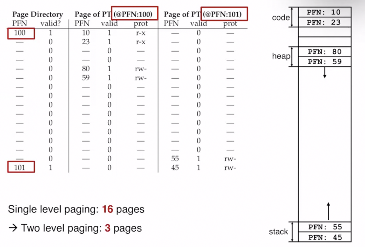 two-level page tabel을 사용해서 3 개의 page만 사용하는 것을 볼 수 있다.