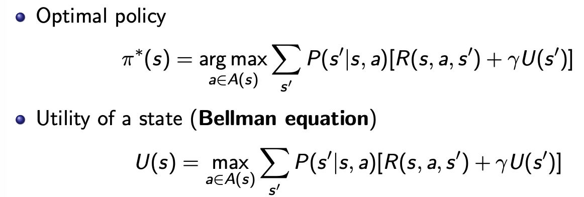 optimal policy와 utility of a state 구하는 방법은 결국 아래와 같다.