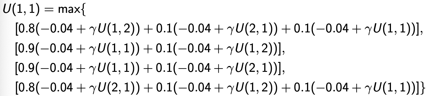 위에서 나온 그림의 (1,1)좌표에서의 utility를 구하는 과정이다.