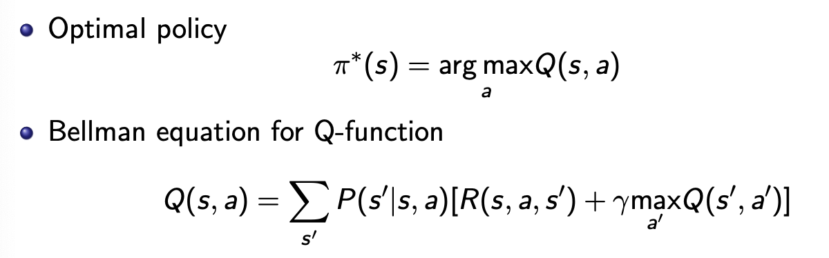 이 Q function을 이용한 Optimal policy와 bellman equation은 다음과 같다.