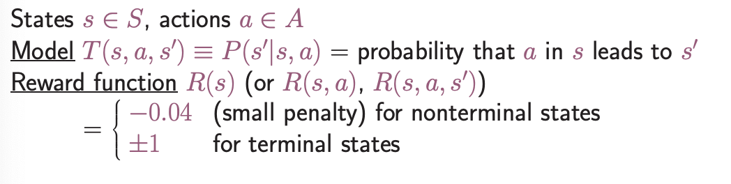 R(s) (or R(s, a), R(s, a, s' ))는 state s 에서의 reward를 나타내어주는 함수이다.