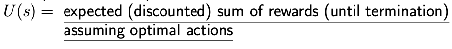 U(s)란 결국 state s에서 expected utility를 최대로 하는 action을 나타내는 것이다.