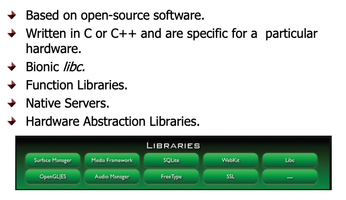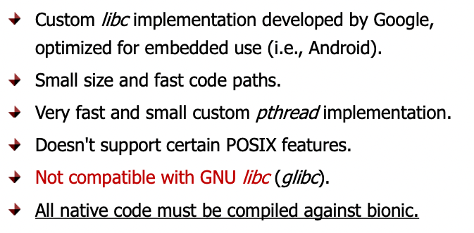 안드로이드는 GNU library libc를 쓰는 것이 아닌 Bionic libc를 사용한다.( 더욱 휴대폰에 적합하도록)