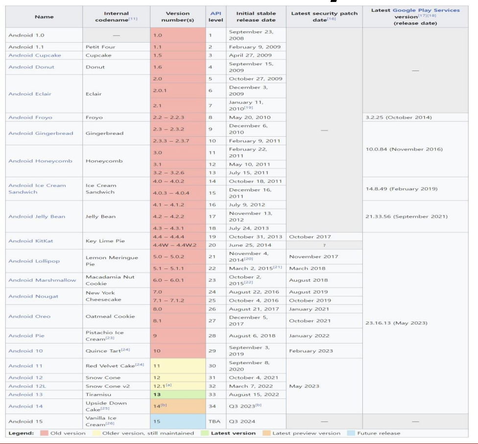 위 표는 안드로이드의 역사를 나타낸 표이다.