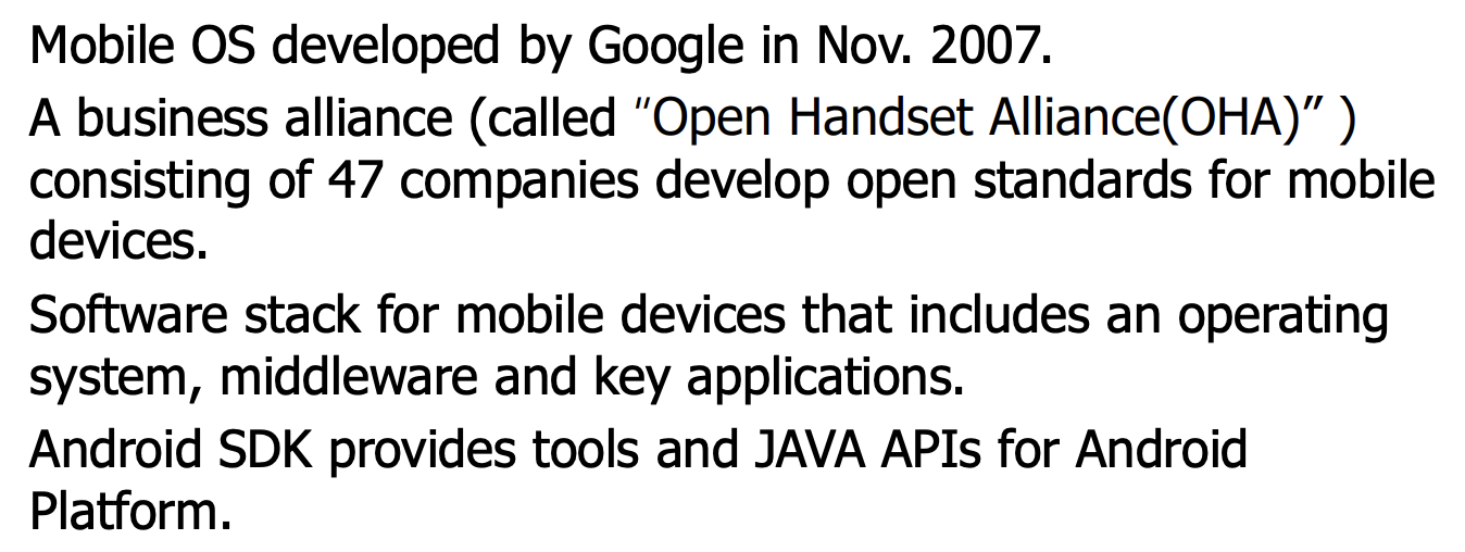 안드로이드는 구글에 의해 2007년에 개발된 모바일 os 이다.