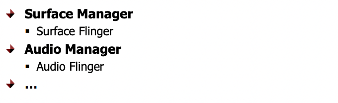 native server 로는 surface manager, audio manger 가 대표적이다.