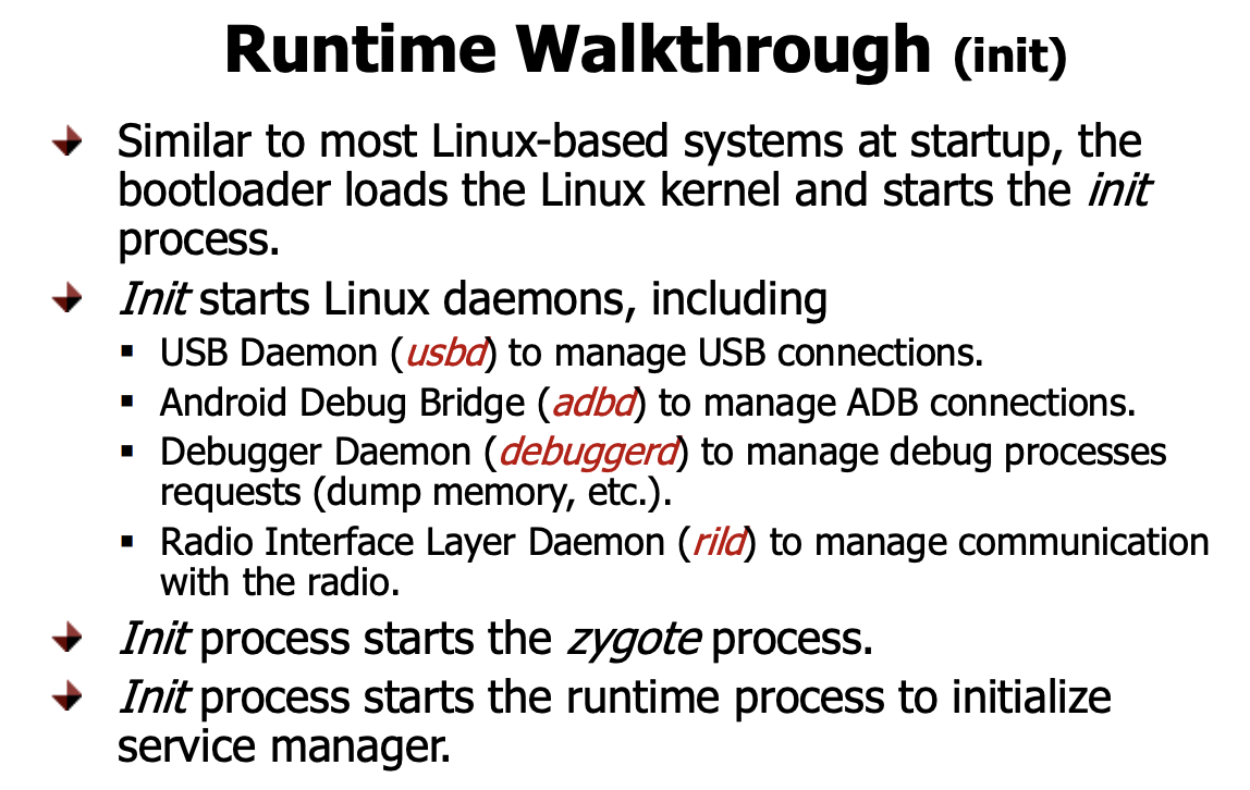 5. 또한 init process는 runtime process를 시작하여 service manager를 초기화할 수 있도록 한다.