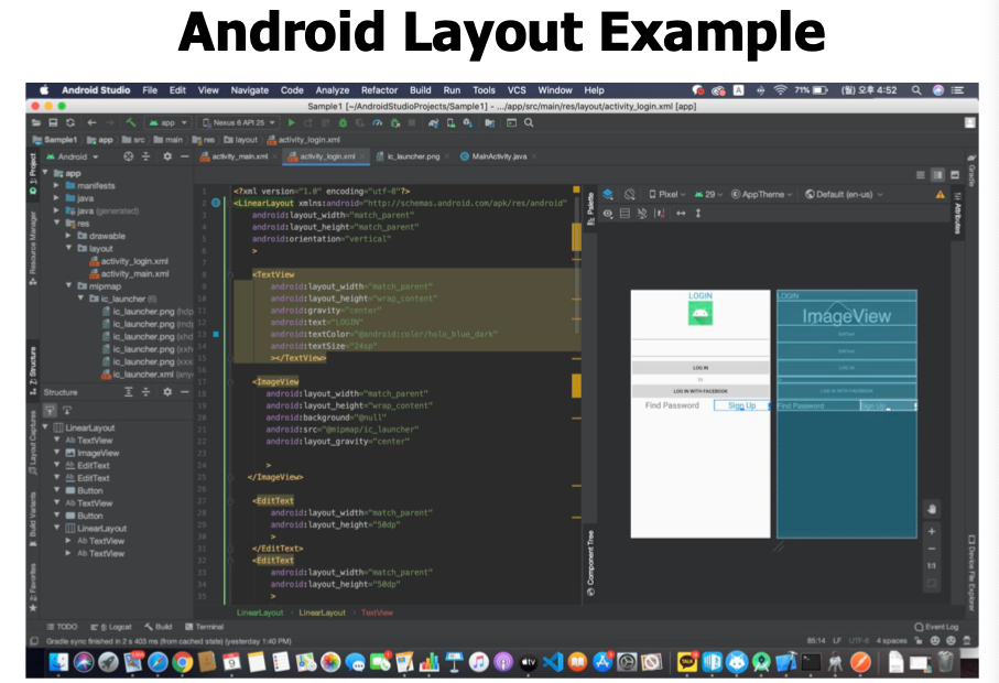 이런 activity는 AppCompactActivity라는 class를 상속받아 함수등을 재정의 하여 구성한다.