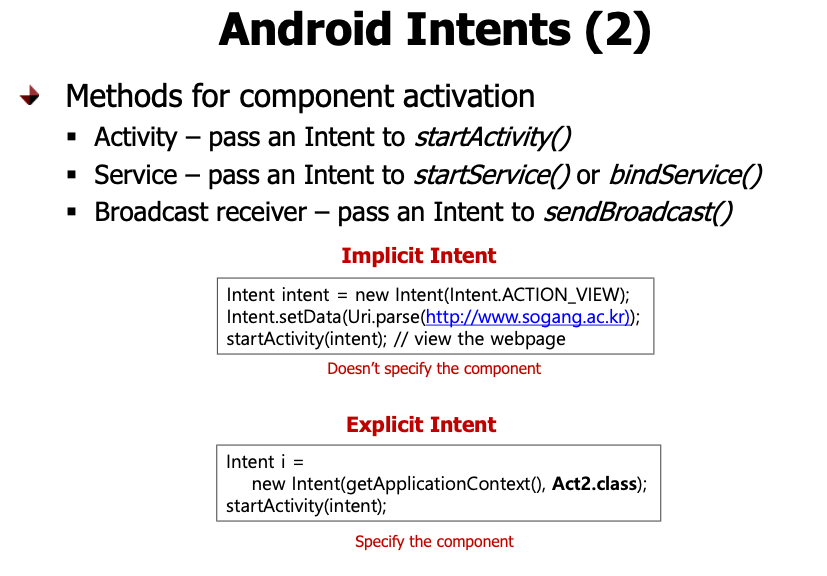 Intent의 통신 방법은 두가지 방법이 있다.