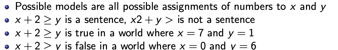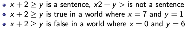 두번째는 해당 수식이 x=7 y=2일 때 True 임을 나타낸다 즉 Semantic 값이 True라고 볼 수 있다.
