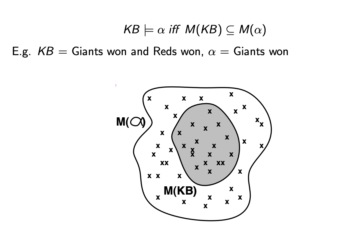 새로운 sentences 를 a1이라고 했을 때 a1이 KB를 포함하고 있으므로 a1이 KB를 entail 한다고 판단이 가능하다.