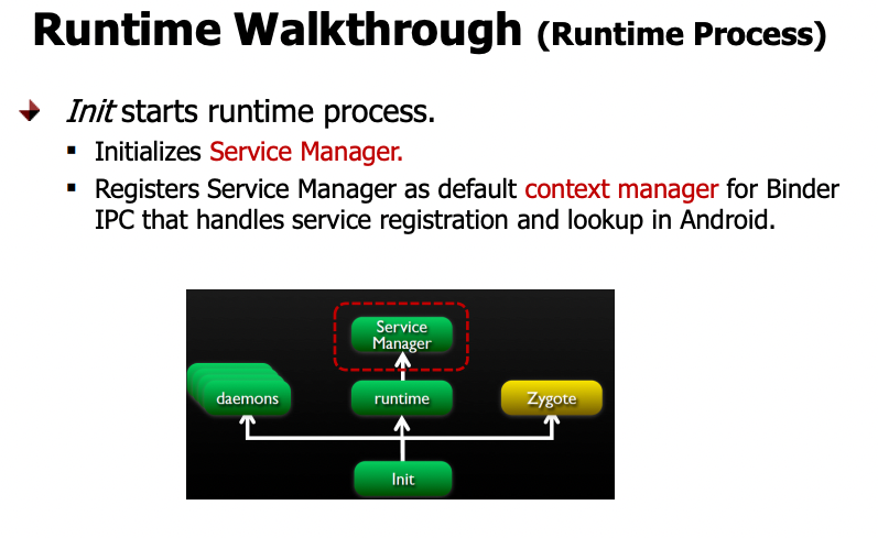 5. 또한 init process는 runtime process를 시작하여 service manager를 초기화할 수 있도록 한다.